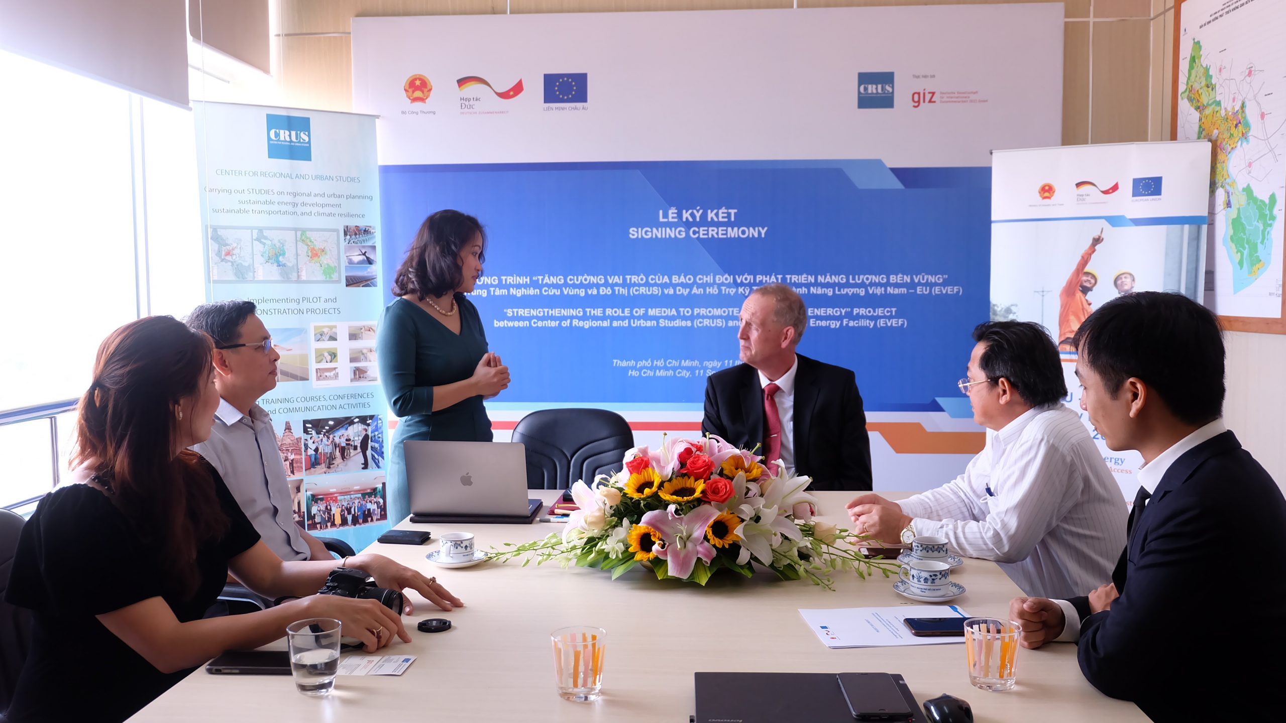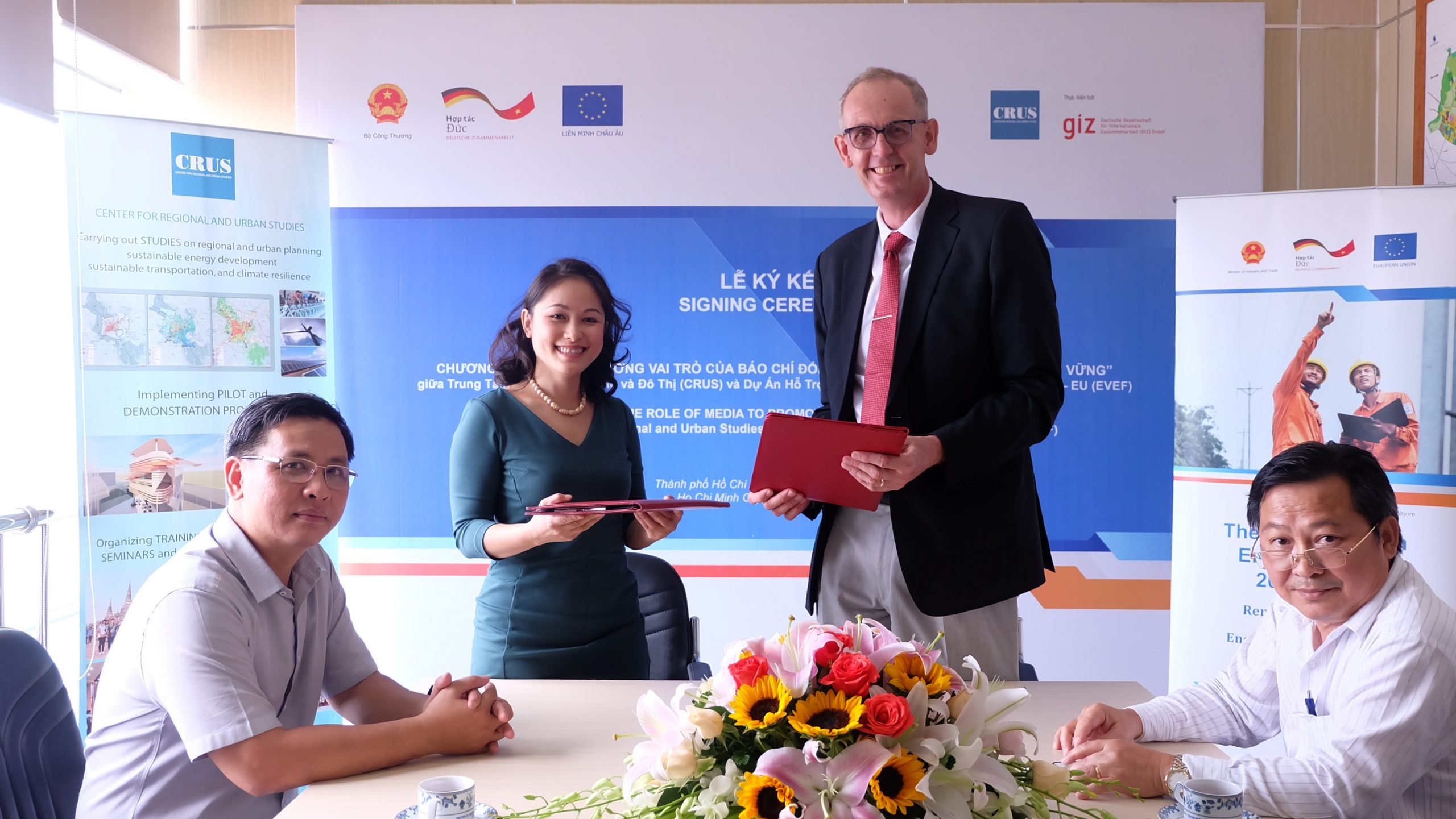 On September 11, 2020, in Hồ Chí Minh City, the EU – Viet Nam Energy Facility (EVEF) and the Center for Regional and Urban Studies (CRUS) signed an agreement to implement the project “Strengthening the role of media to promote renewable energy”. This is a technical assistance facility under the sub-component 1B of the EVEF. The signing ceremony was participated by Mr. Sven Ernedal – Project Director of EVEF, Ms. Lê Vân Anh – Director of CRUS, and Professor. Dr Nguyễn Văn Phước, Chairman of the Hồ Chí Minh City Union of Science and Technology Associations (USTA – HCM).